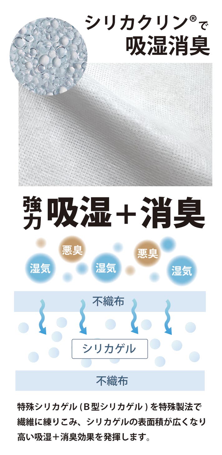 ※「吸湿消臭」は製品に含まれるシリカクリン®の効果です。