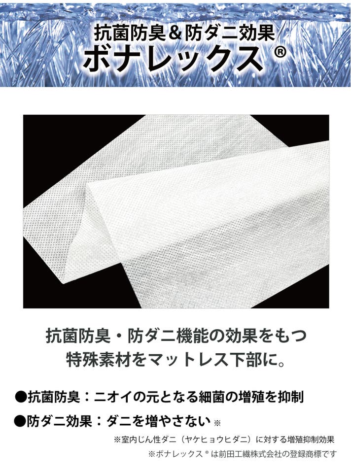 ※「抗菌防臭」「防ダニ」は製品に含まれるボナレックス®の効果です。