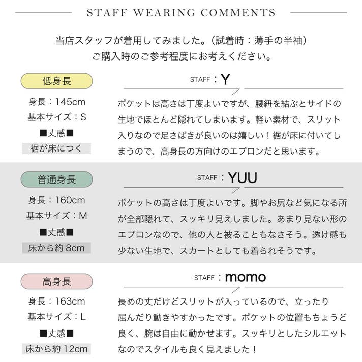 ジナルエプロンの製造販売を行うエプロン専門店です。専門のスタッフの視点で企