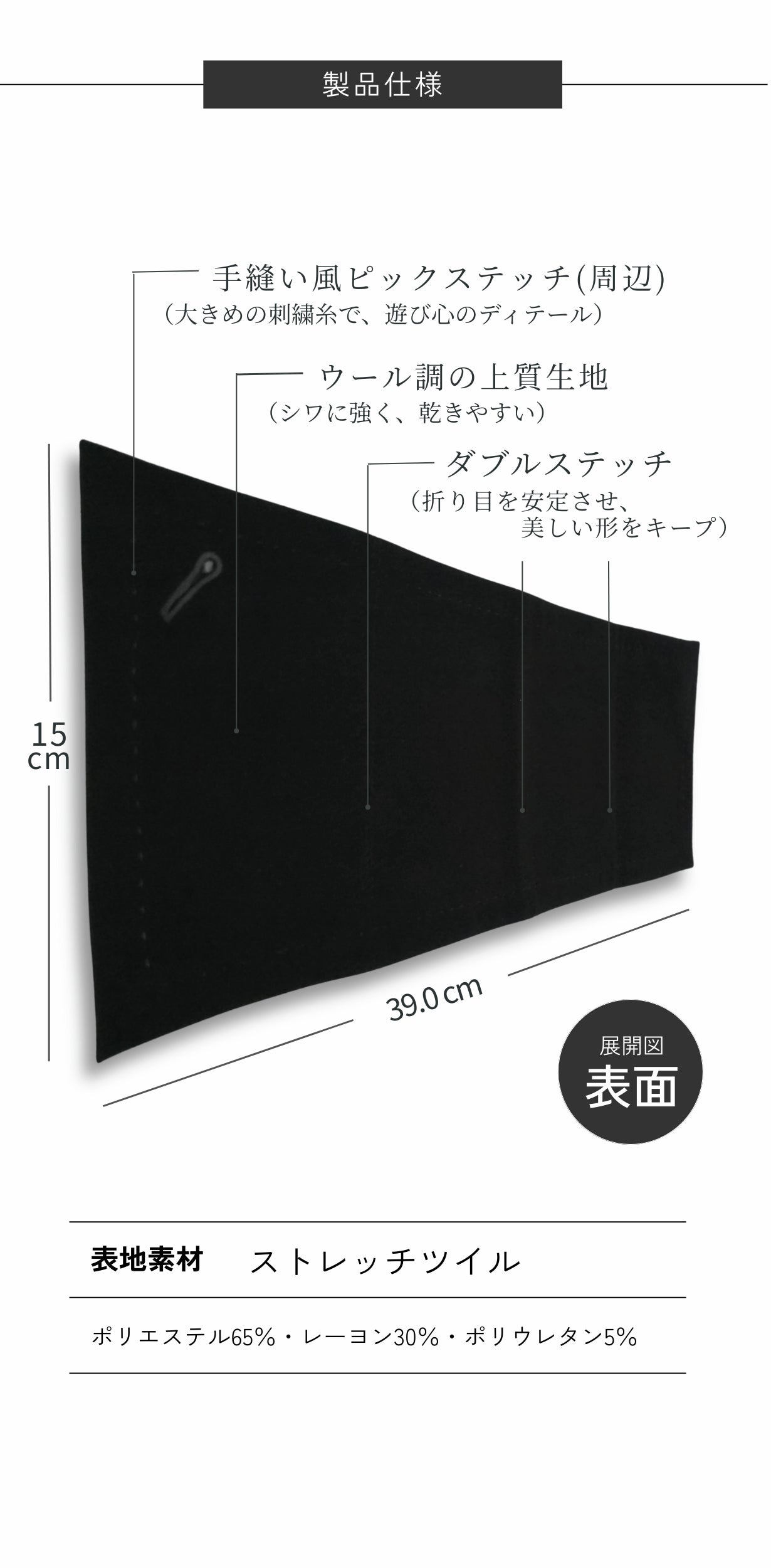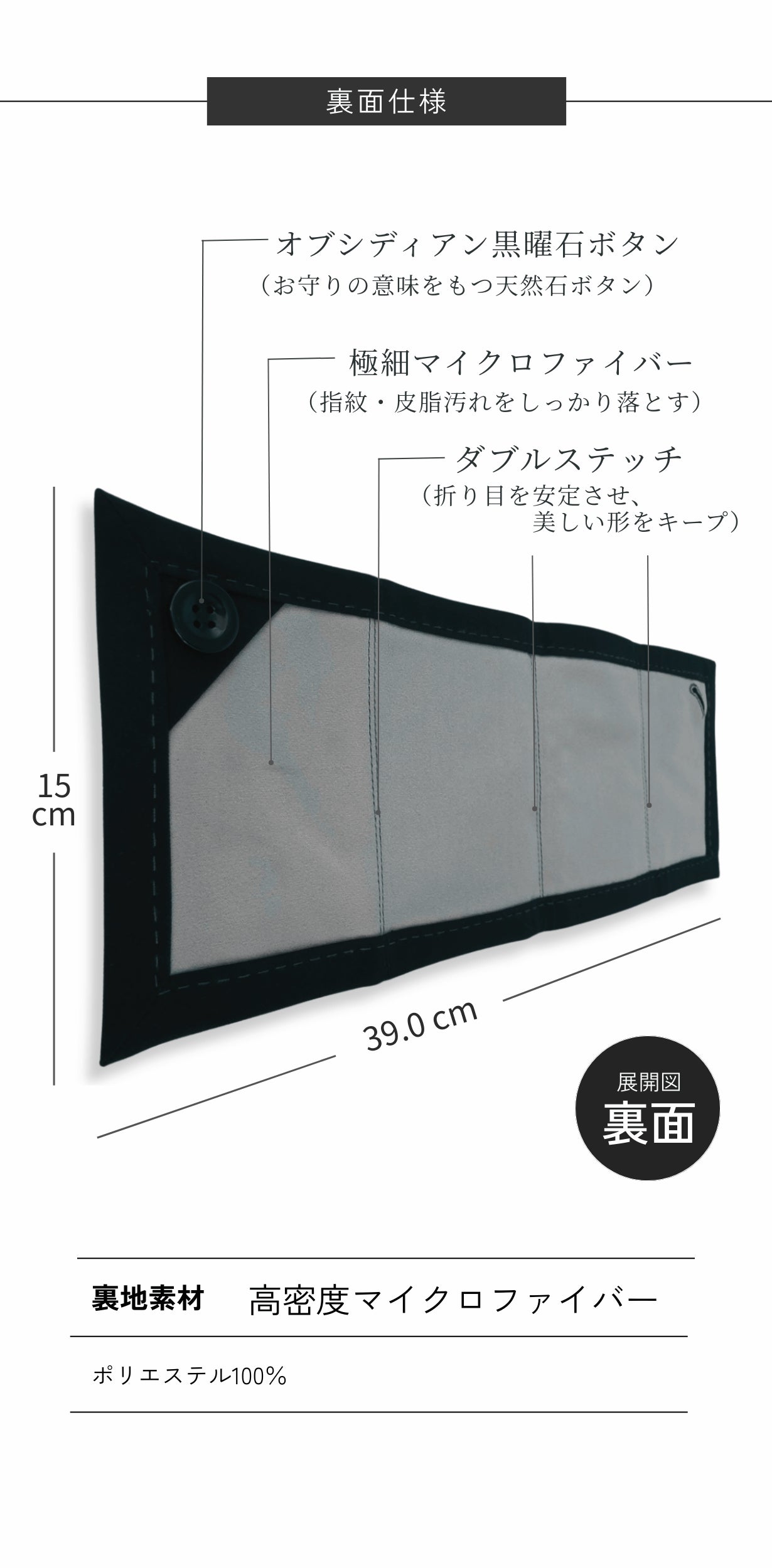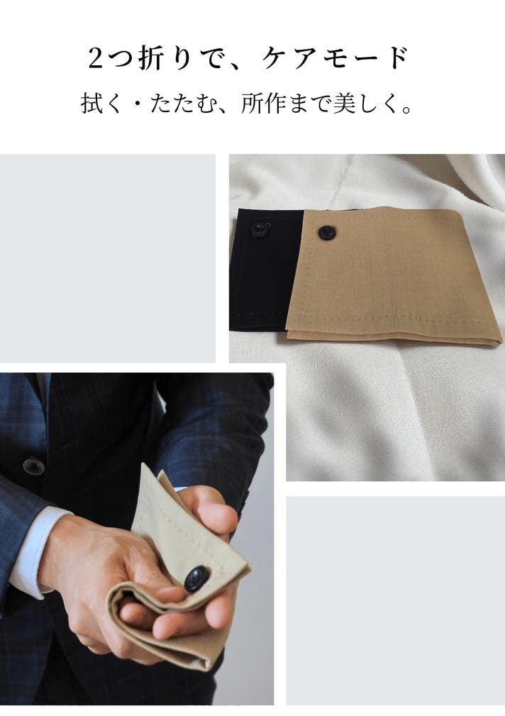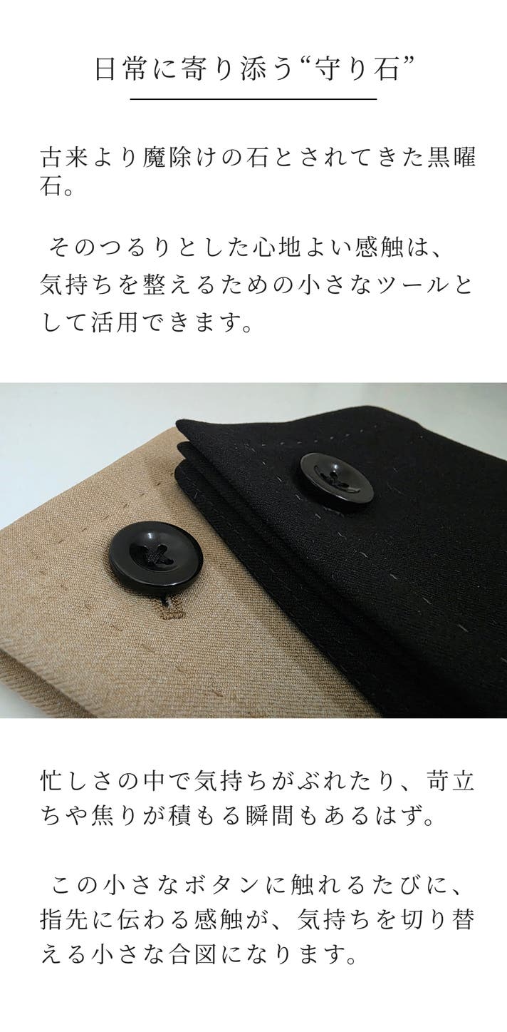 - 裏面に超微細マイクロファイバー、品を引き立てる黒曜石ボタン。所作も美しく見せる縫製設計