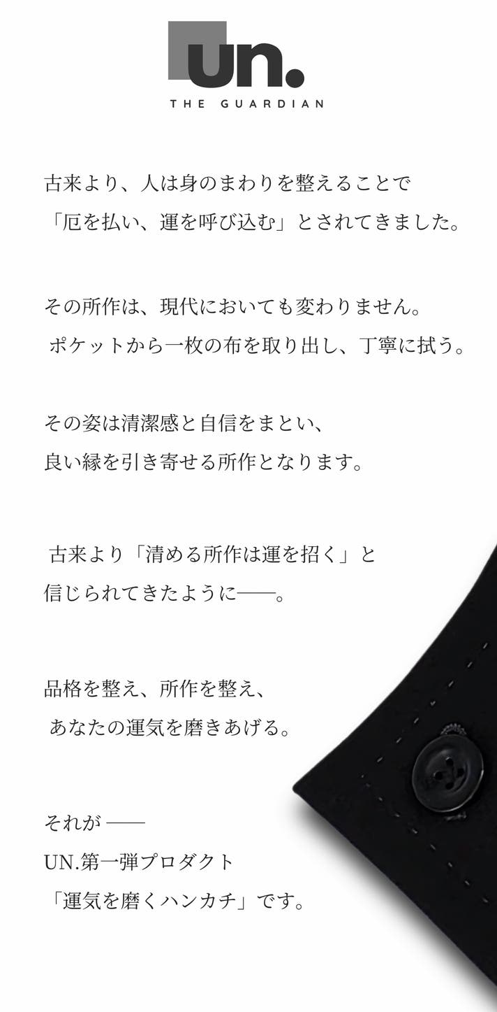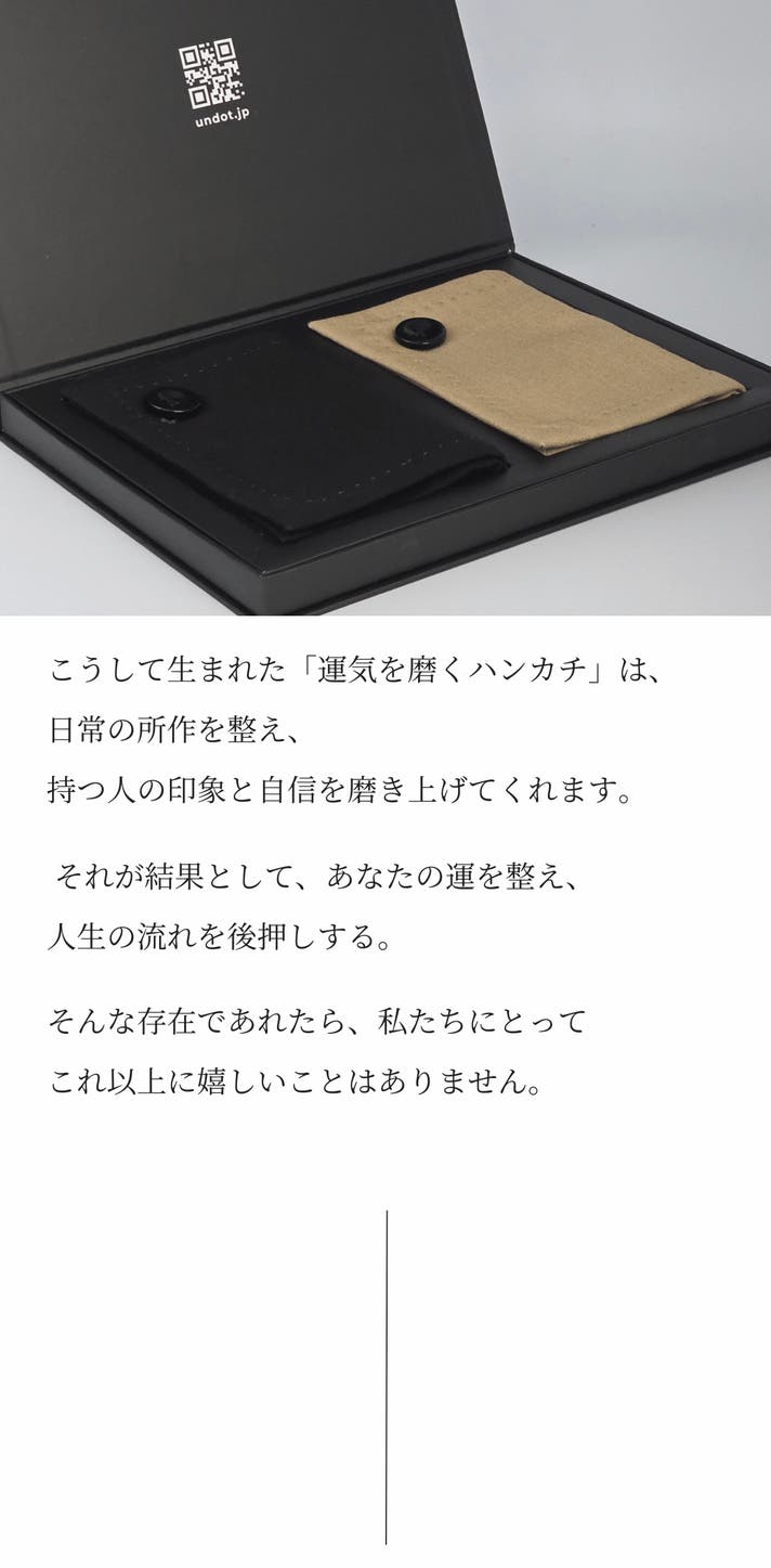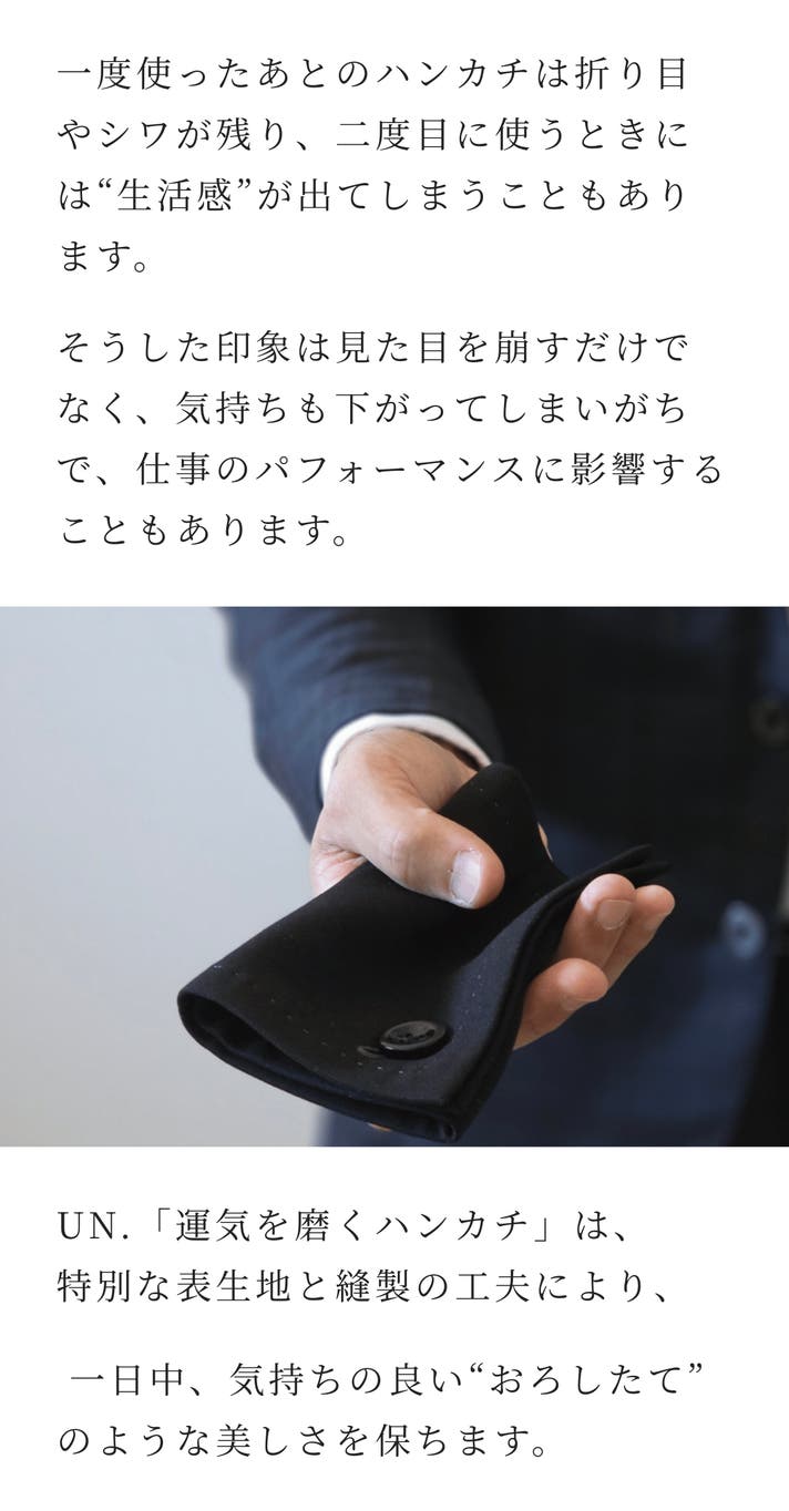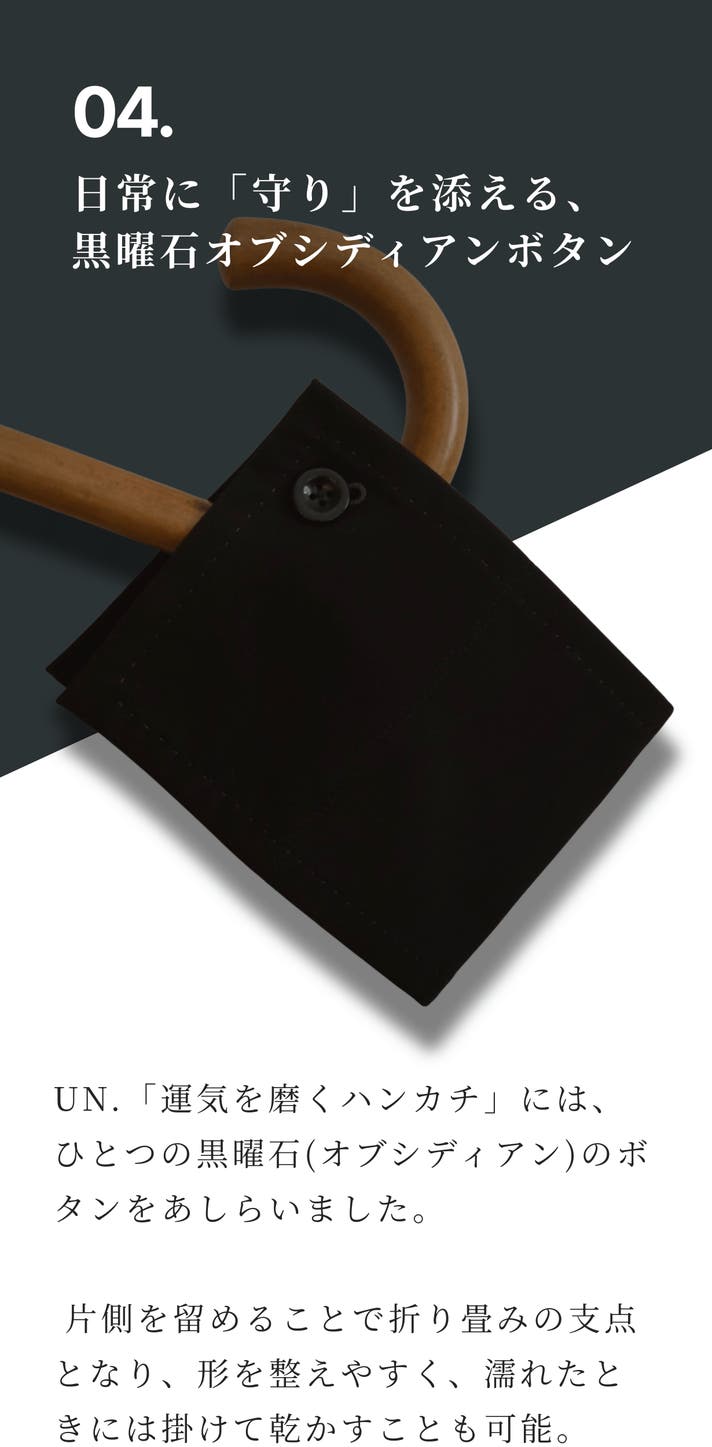 この「運気を磨くハンカチ」は、UN.にとっての第一歩です。