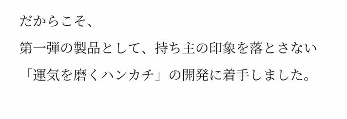 このたびは、弊社第一弾プロジェクト「運気を磨くハンカチ」をご覧いただき、誠にありがとうございます。