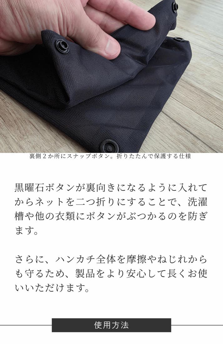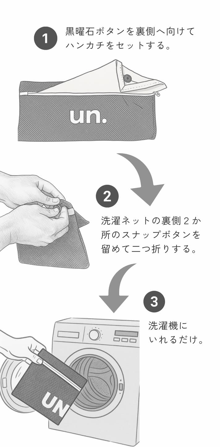 UN. 運気を磨くハンカチの風合いを永く保つための、ブランドロゴ入り専用ランドリーネットです。