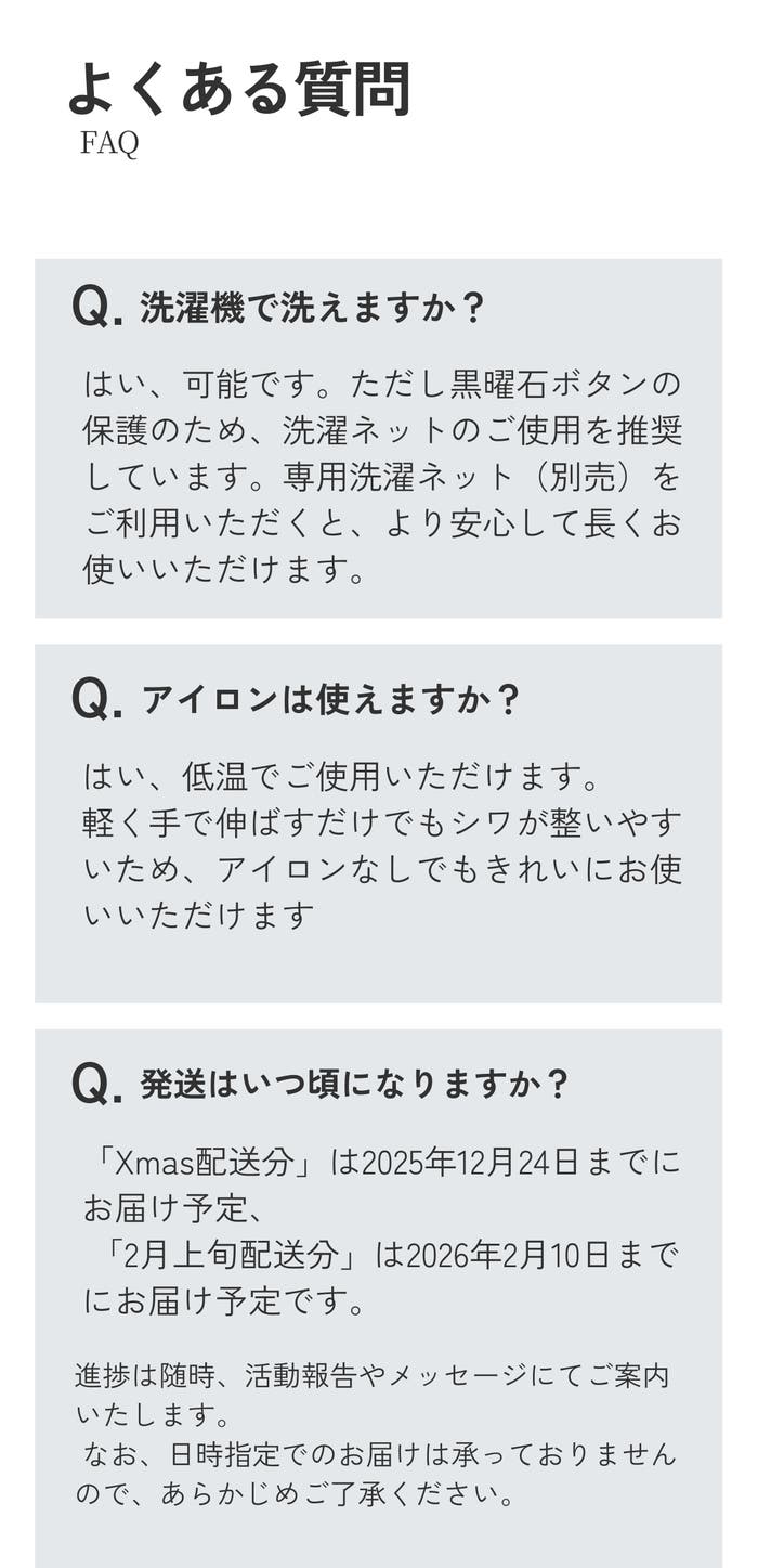 ・応援購入いただいたハンカチと同梱し、クリスマスに間に合うよう、2025年12月24日(水)までにお届けの予定です。