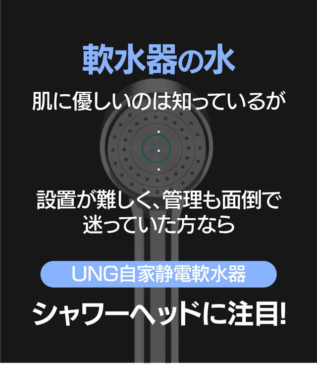 UNG軟水器シャワーヘッドは水アカ等を除去し、サビや水のヌメリを発生させないように防止する役割を果たします。