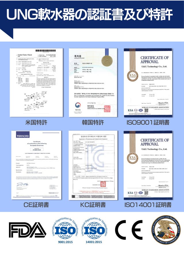 UNG軟水器シャワーヘッドの国内外特許及び認証事項