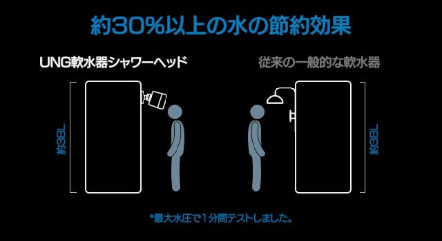 UNG 軟水器シャワーヘッドは約30%以上の水の節約効果が得られます!