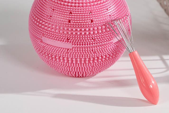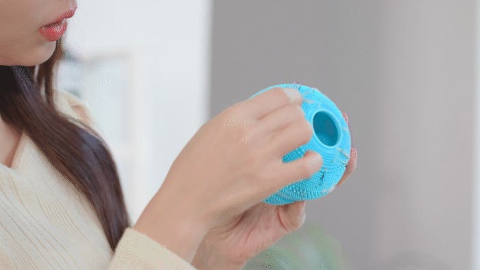 ブラシで本体をなでるようにするだけで、マイクロシリコンブラシに付いたほこりや毛をかき出せます。