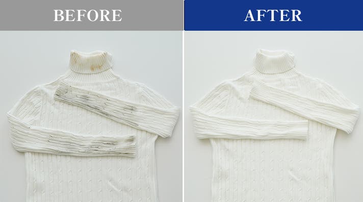 皮脂汚れが気になる白いニットや、汚れが残りやすい首元もすっきり。面倒な手洗いはもう不要。洗濯ボールProを入れるだけで、すみずみまできれいに洗い上げます。