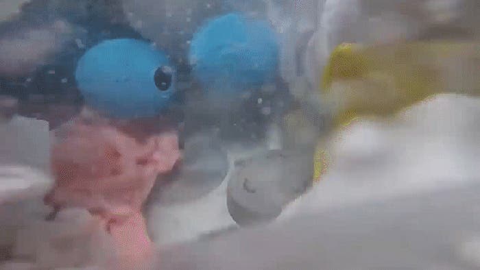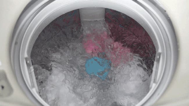 回転するたびに水が出入りし、洗濯水がボール内部を通過。