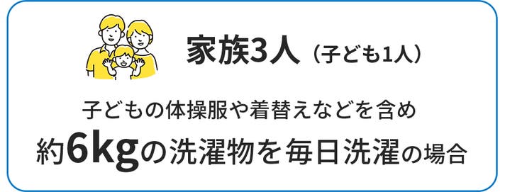 ※3人で約4.5Kg/日の洗濯(1人あたり約1.5kg/日が目安)