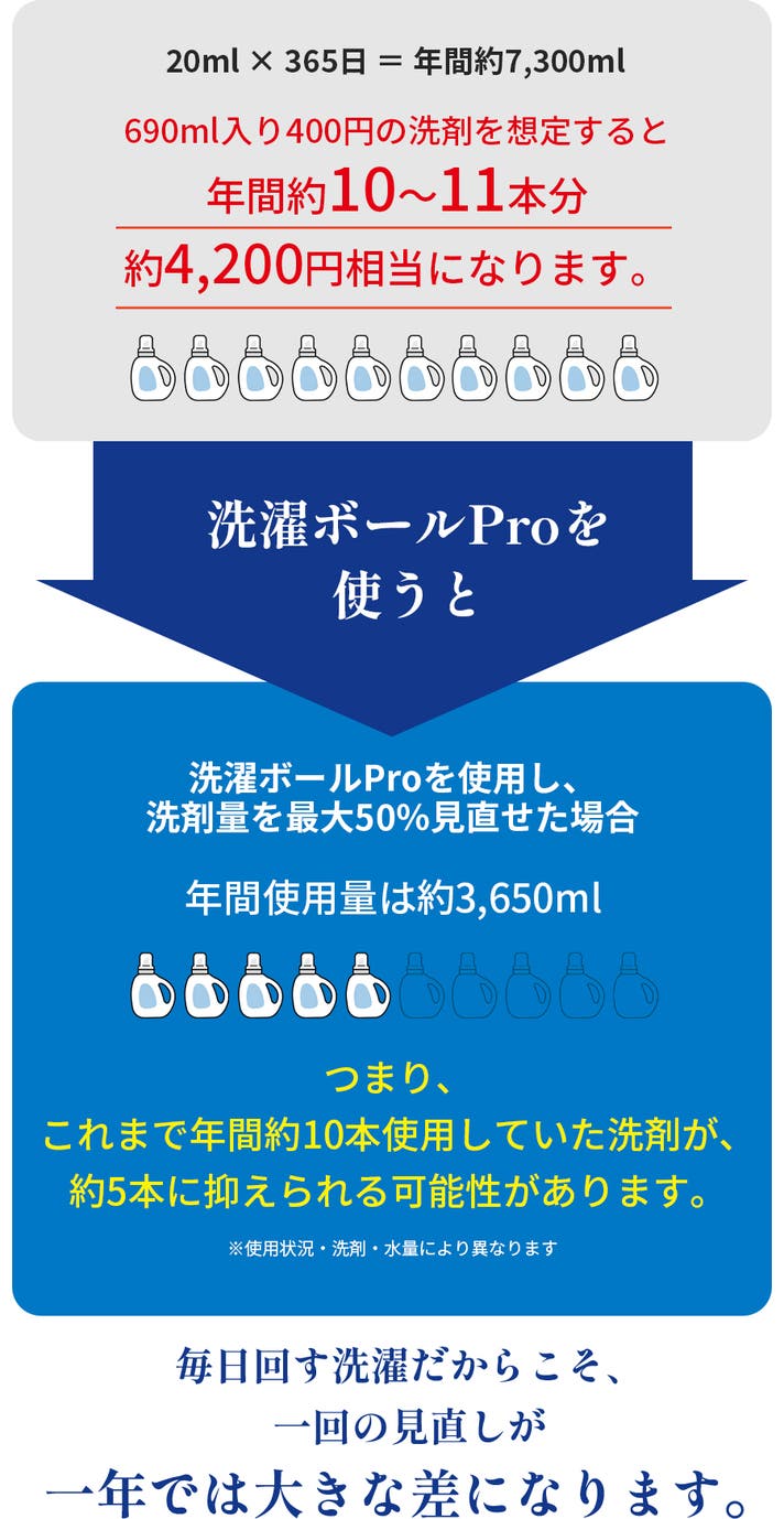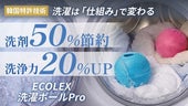 A. 試験条件下では洗剤量を最大50%削減できる可能性が確認されています。使用状況により異なります。