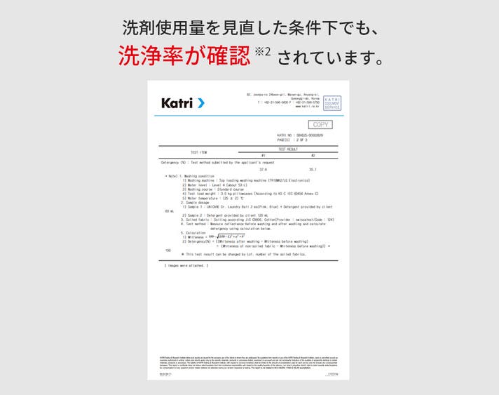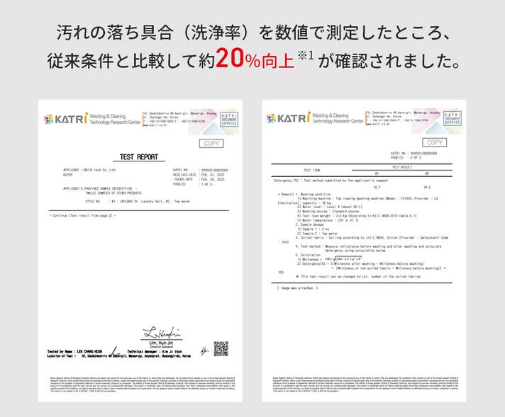 第三者試験機関「KATRI」にて洗浄試験を実施。