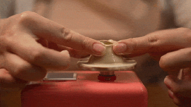 USBから電源を取って、ろくろの上に陶土を乗せて