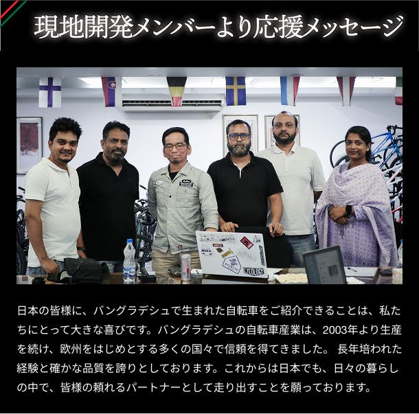 「この素晴らしい技術と品質を日本に広め、バングラデシュ製自転車を通して多くの人にスポーツバイクの楽しさを伝えたい!」