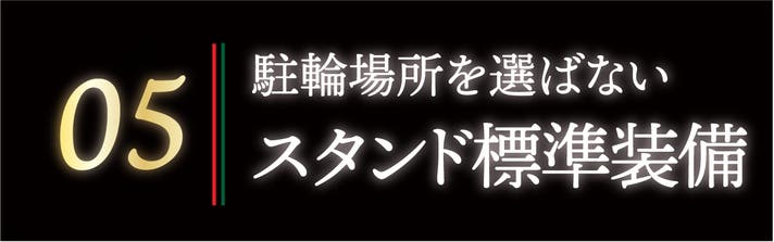 スタイリッシュさを損ねず、一般的な自転車同様にコンビニや駅前、マンションの駐輪場、どこでも駐輪できる仕様で設計。