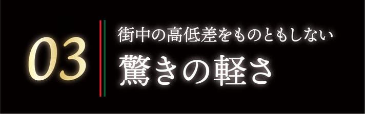 重量のあるママチャリやアシスト制限でスピードが出せない電動アシスト車では楽しめない、疾走感を感じられる設計。