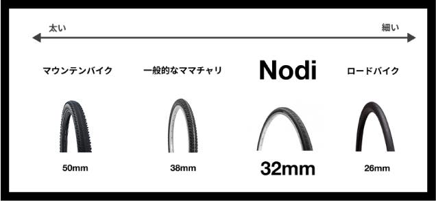 一方で、一般的なロードバイク(25mm)に比べやや太く、段差や砂利にも強い!