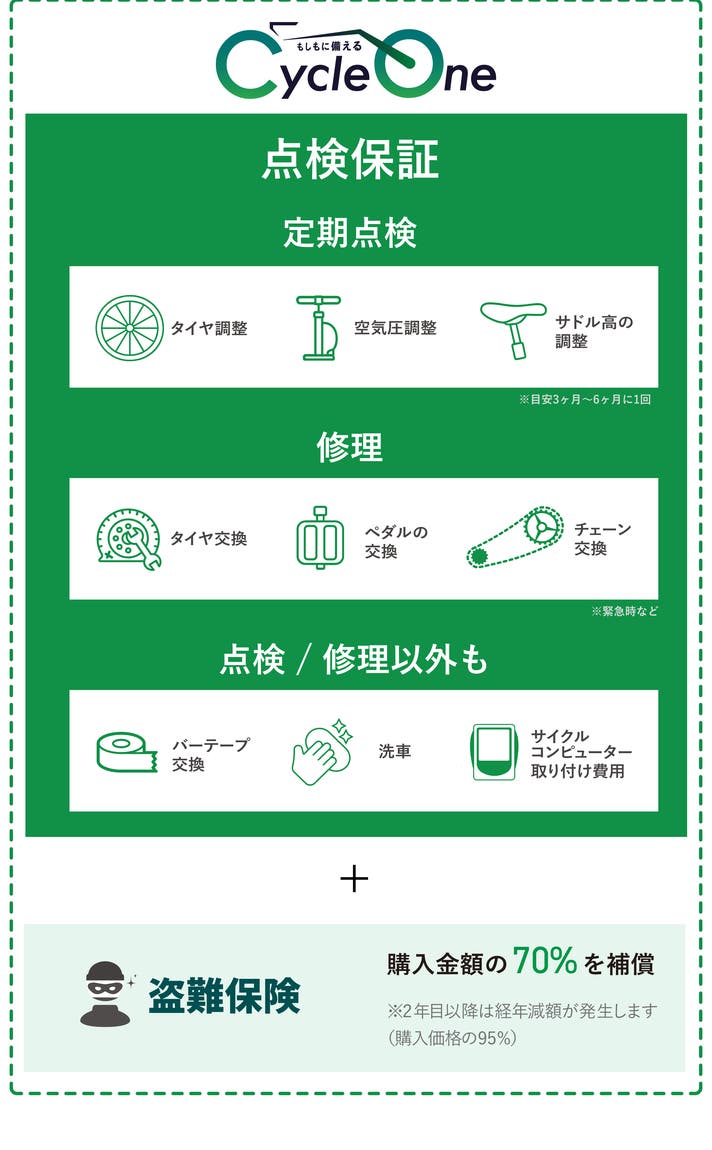 ※点検保証+盗難保険(Cycle One)の詳細については安心+のアフターサポートをご覧ください。