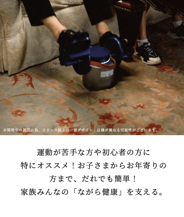 筋力が低下しやすいシニア世代の「無理なく、楽しく、続けられる運動」をサポート。シニアの無理ないトレーニングや在宅ケアにもぴったり!