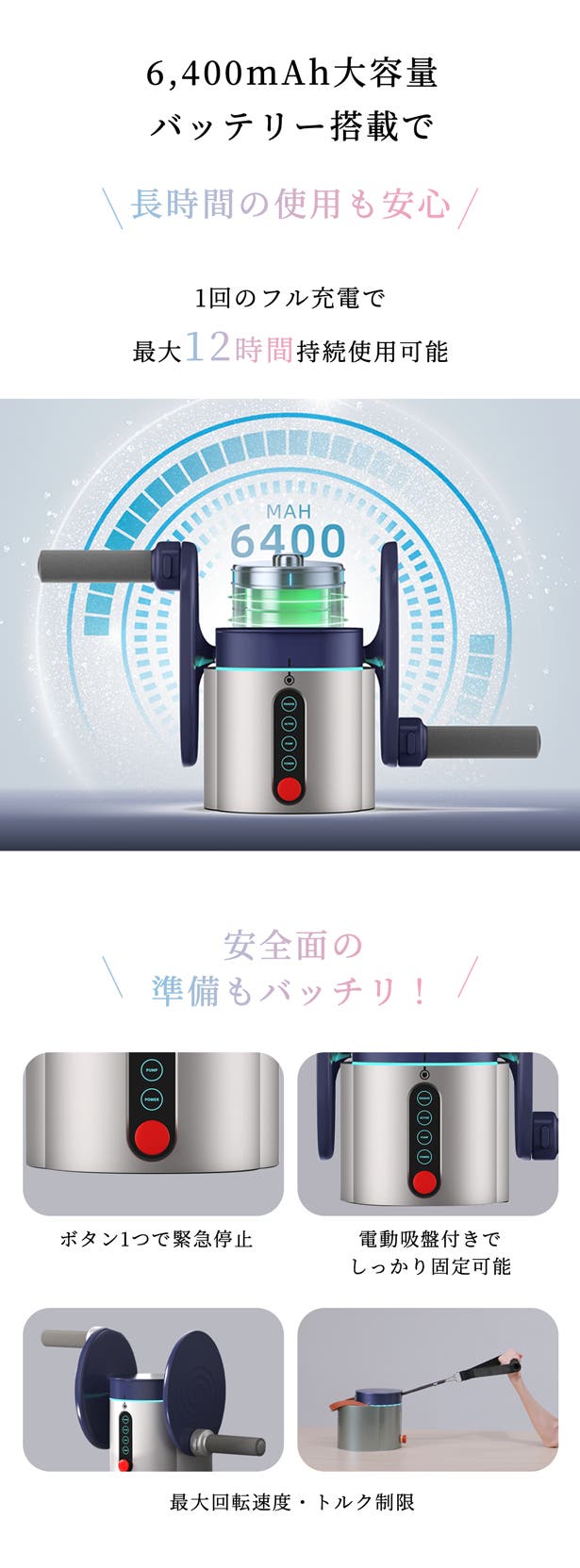電動式吸盤を搭載したことで、UniGym本体を床や机などの滑らかな面に強力かつ安定さを実現できます。