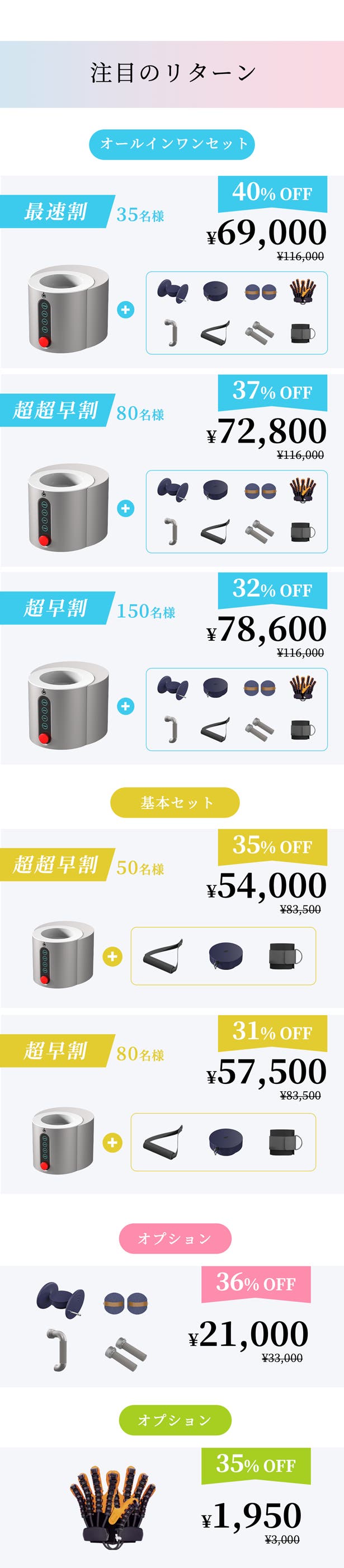※Makuakeでプロジェクトを応援購入する際に、一律してお客様にお支払いいただく「安心システム利用料」の導入により、上記の価格に加えて売価×2.42%(税込)が決済画面でかかります。