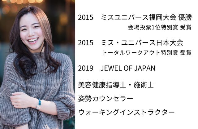 『元競泳アスリート、現美容家として活動しています。ミスユニバース出場後、その経験を基にエステサロン経営、コンテストやウォーキングの講師として約10年にわたり活動してまいりました。