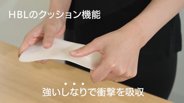 アーチが崩れていると、衝撃を吸収できず膝や腰などを痛めることに。そこで、HBLの芯がアーチのクッション機能をサポートし、足を守ります。