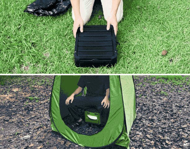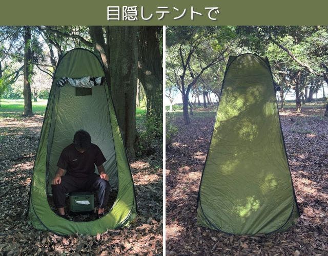 目隠し用の簡易テントと併用することで、完全にプライバシーを確保。どこでも個室トイレを設置可能。
