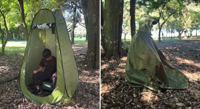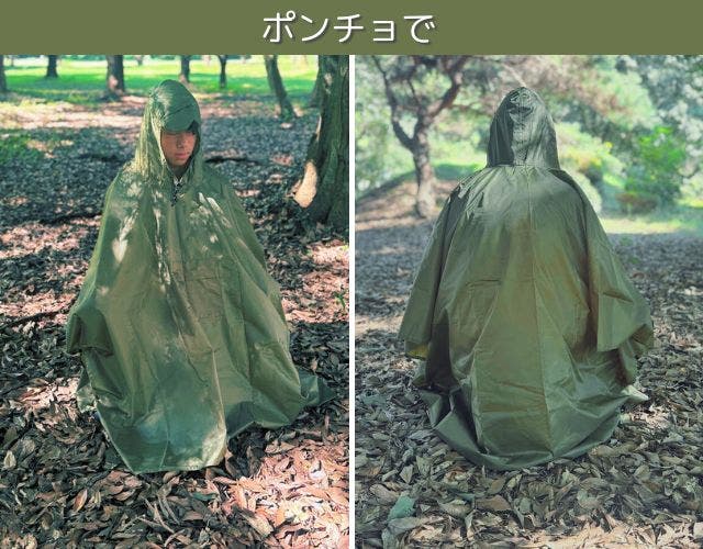 ポンチョなら避難所や車内、狭い屋外スペースなどでもOK。