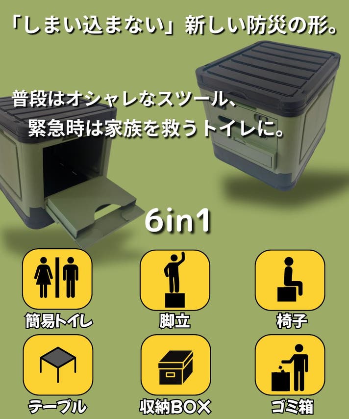 - 【1台6役】トイレ・椅子・脚立・テーブル・収納・ゴミ箱。防災の備えも日常使いもこれ1台で解決
