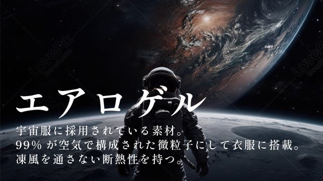 - 【蓄めた熱を逃がさない】”断熱効果”により真冬の冷気を遮断する。宇宙服技術『エアロゲル』とは。