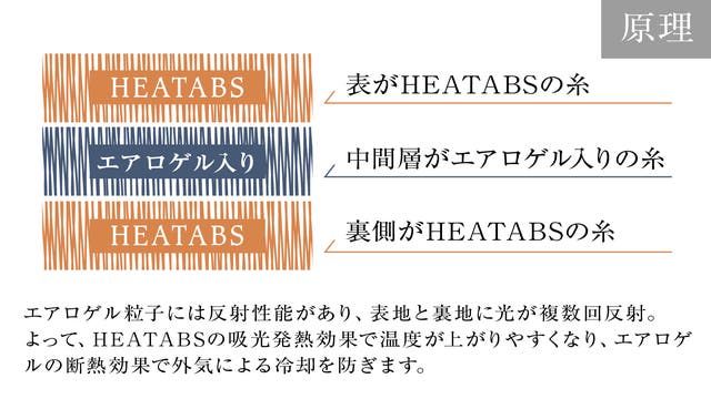 ”HEATABS”(ヒータブス)は日本初となる新素材です。