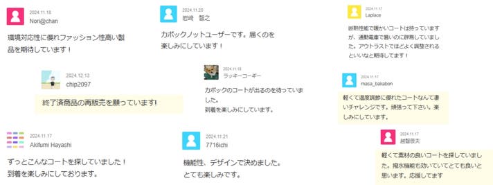 この度、「KAPOK KNOT」さんとの第1弾の共同企画で多くの反響をいただいたカポックコートを、皆様から寄せられた応援コメントをもとに、