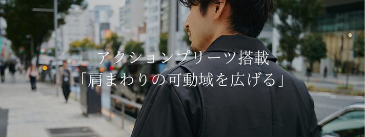 第一弾の共同企画にはなかった、肩まわりの可動域を広げるアクションプリーツを新たに搭載しました。