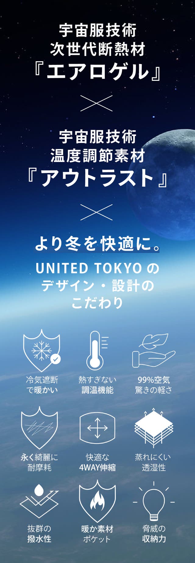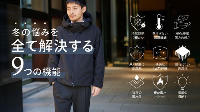 - 【超極暖&軽量】宇宙服技術”エアロゲル”の断熱性が可能にした『真冬の冷気を遮断する』アウター