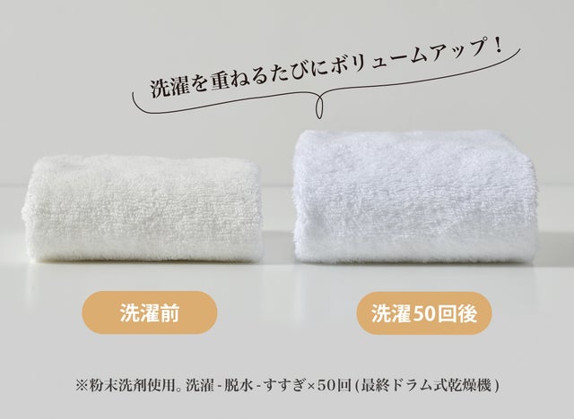 さらに洗うたびに糸が空気を含むため、使えば使うほどふっくらさがアップします。そのため、長く心地よさを実感していただけます。