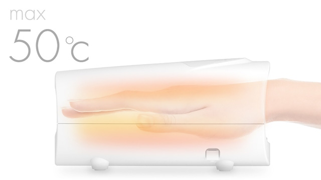 本製品は、体温より少し温かい38度から最大50度までの4段階から温熱調整ができます。