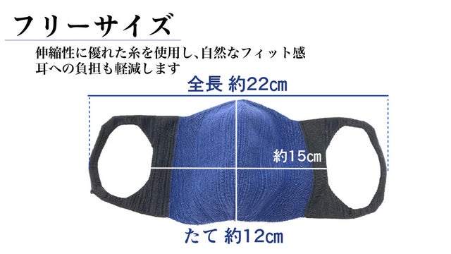 ※顔に当たる部分(上部画像の青い部分)はアウトラストを使い、耳に掛かる部分(上部画像の黒い部分)には伸縮性のあるポリエステルを使用しております。