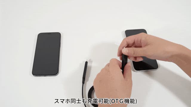 Lightning端子のiPhoneとType-Cの新しいiPhoneやAndroidを使い分ける“二刀流”ユーザーにも最適。どちらの機種にも1本で対応でき、さらにスマホ同士の充電も可能なので、モバイルバッテリーを持ち歩かなくても快適です。