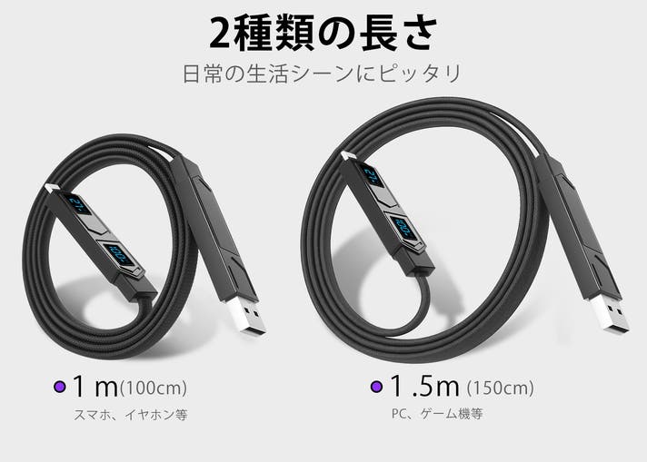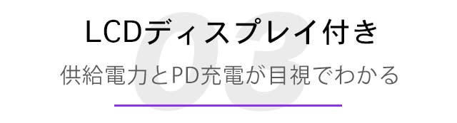 車のスピードメーターで走行速度を把握できるように、リアルタイムで“充電速度を数値で見たい!”という声に応えて、ディスプレイタイプを搭載。LightningでもType-Cでも電圧・出力状況をしっかり可視化でき、本来見えないものが見える楽しさと快適感を体験できます。