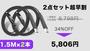 【2点セット超早割 34%OFF】CHARGO 充電ケーブル1.5M×2本