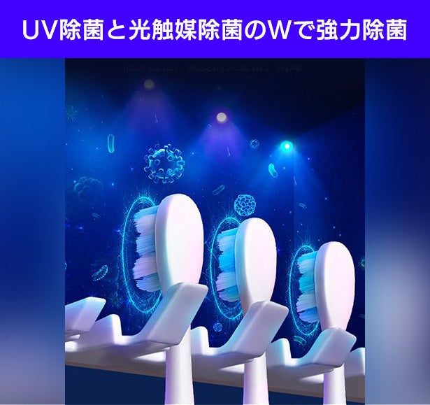UV除菌と光触媒抗菌を組み合わせて、短時間で強力に歯ブラシを除菌します。