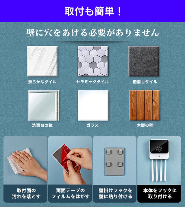 - ウイルスや細菌が気になる季節でも毎日歯ブラシを清潔に除菌乾燥してくれます。