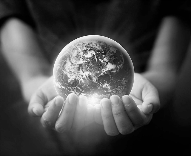 2.モノクロver:「地球の未来を紡ぐ」がテーマのビジュアルイメージ