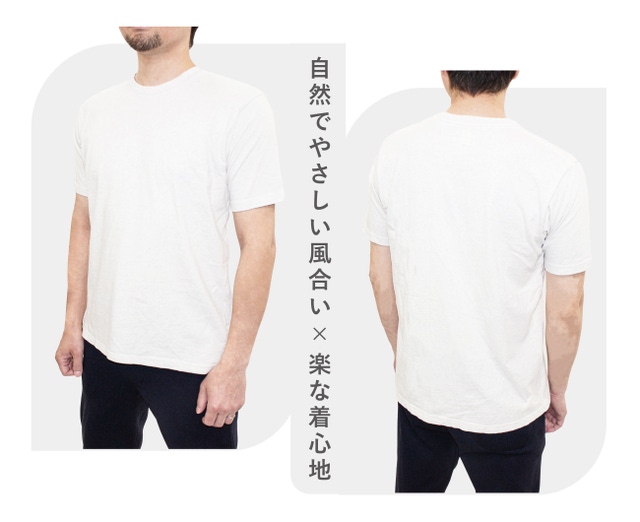 2社共同企画によって生まれた【再生糸使用 綿100%日本製Tシャツ】。生地の柔らかさ、綿の風合いのよさを実現することが出来ました。