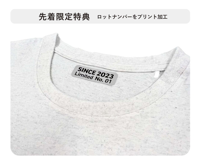 その先行販売がマクアケになる為、先着限定50枚限定で、ロットナンバーを転写プリント加工したTシャツを準備しております!