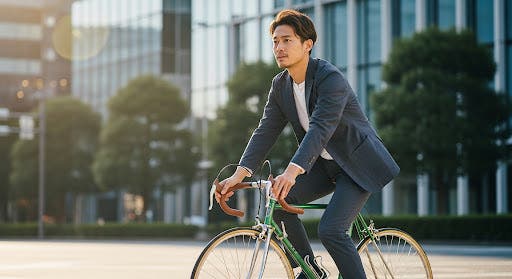 A:はい、ヨガウェアの快適性をビジネスウェアに転換することをコンセプトに開発されました。非常に高い伸縮性があるため、自転車通勤や長時間のデスクワークでも、窮屈さを感じることなくお過ごしいただけます。