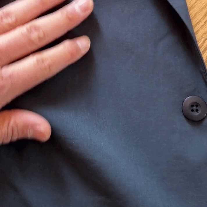 A:W&W試験で4級と皺になりにくい評価があります。パッカブル機能を備えており、シワになりにくい素材のため、出張バッグやバックパックに折りたたんで入れても、取り出してすぐに着用いただけます。