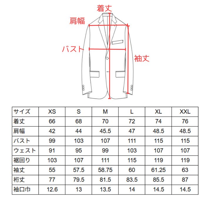 A:本製品は360°ストレッチ素材を使用しているため、通常のスーツよりも柔軟にフィットします。詳細なサイズ表(着丈、肩幅、身幅など)をサイズ表に掲載しておりますので、お手持ちのスーツと比較してご確認いただくことをお勧めします。